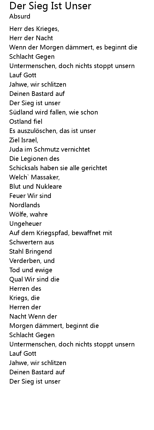 | Song | Der Sieg Ist Unser |