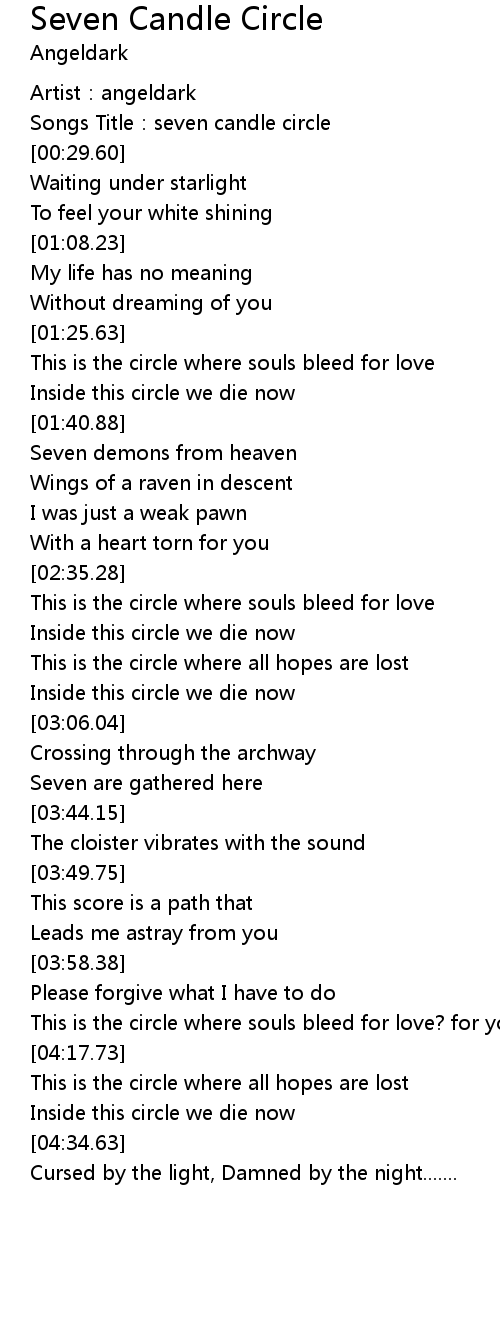 | [04:04.07] | This is the circle where souls bleed for love? for you |