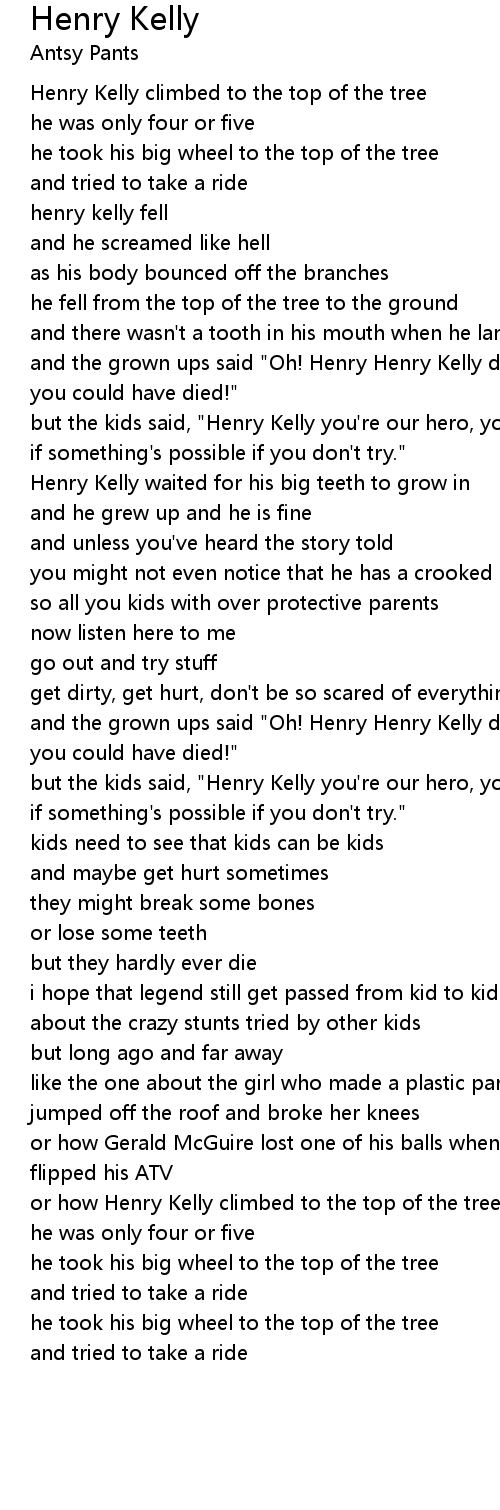 and the grown ups said "Oh! Henry Henry Kelly don't you see |