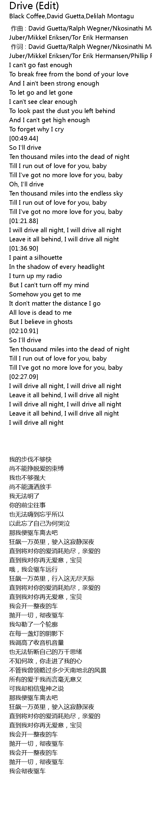 | [02:35.71] | Leave it all behind, I will drive all night |