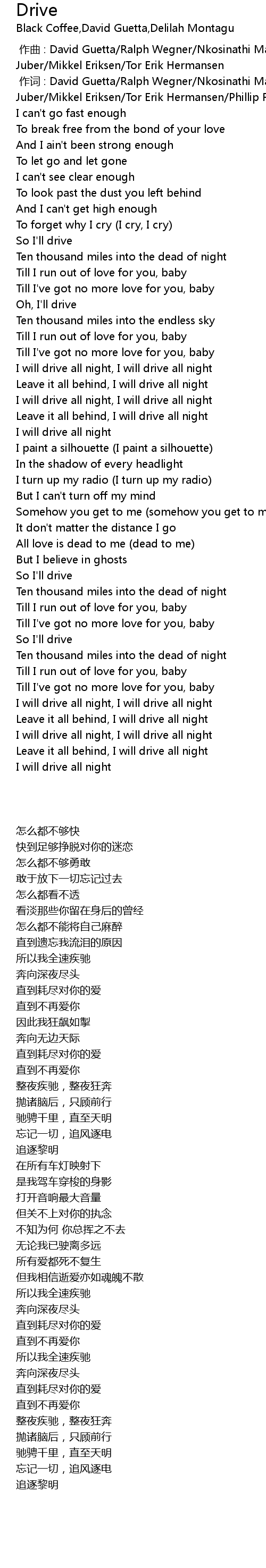 | [02:00.536] | Leave it all behind, I will drive all night |
