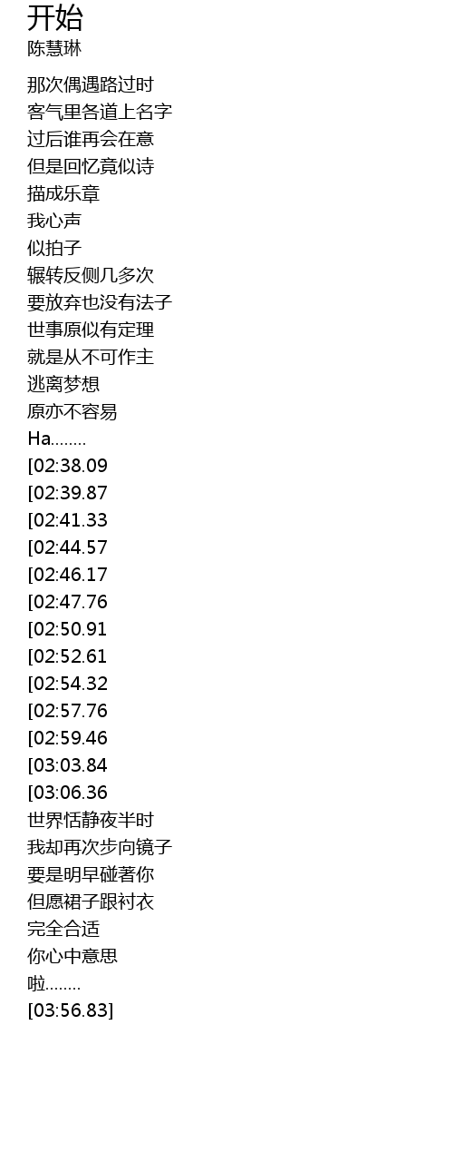 | [03:35.75][02:52.61][01:32.56] | 如能同开始 |