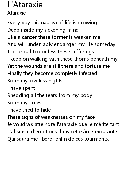 | Je voudrais atteindre l' ataraxie que je me rite tant. | |