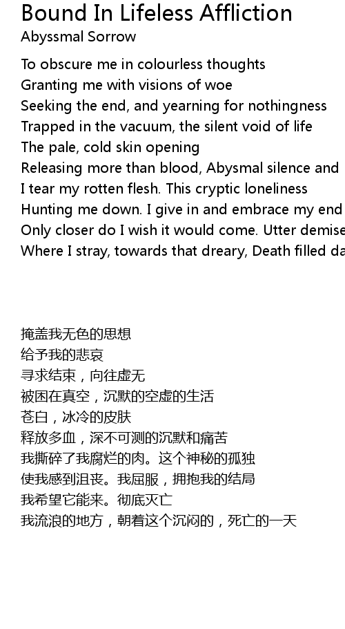 I tear my rotten flesh. This cryptic loneliness |