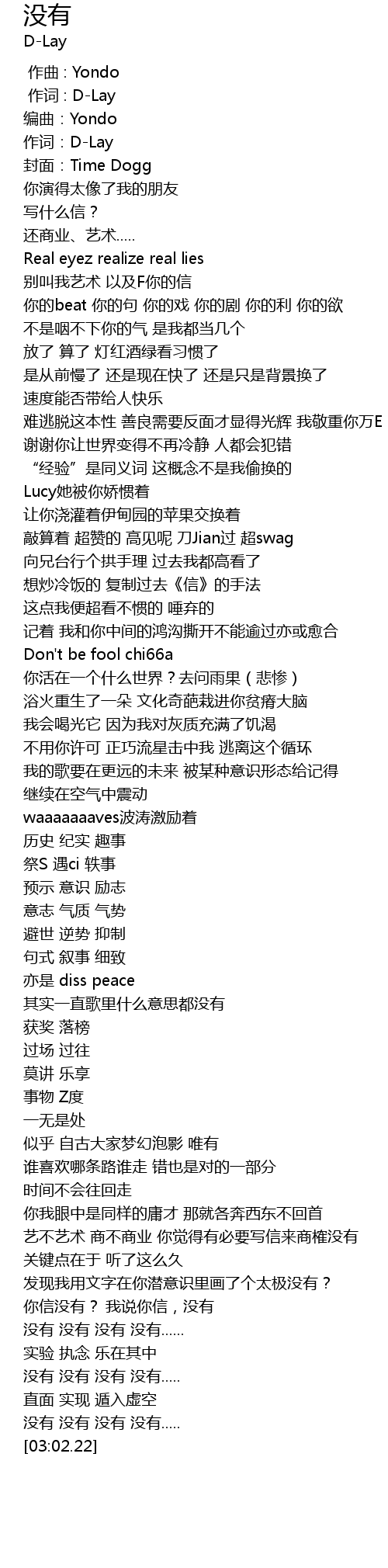 | [00:02.06] | 作词:D-Lay |