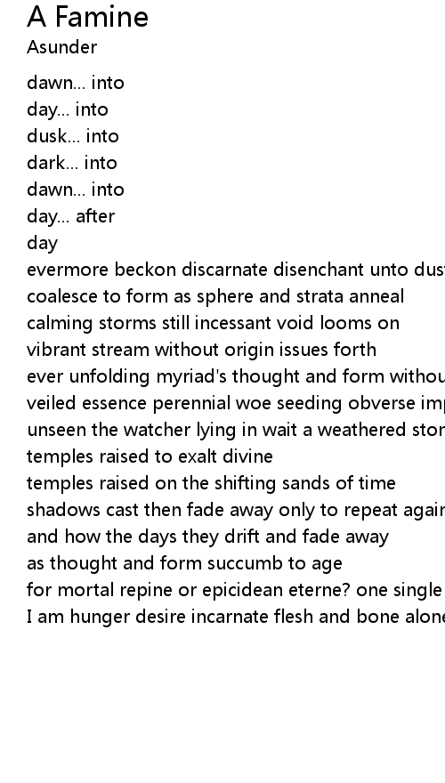 I am hunger desire incarnate flesh and bone alone |