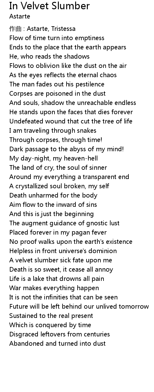 | Song | In Velvet Slumber |