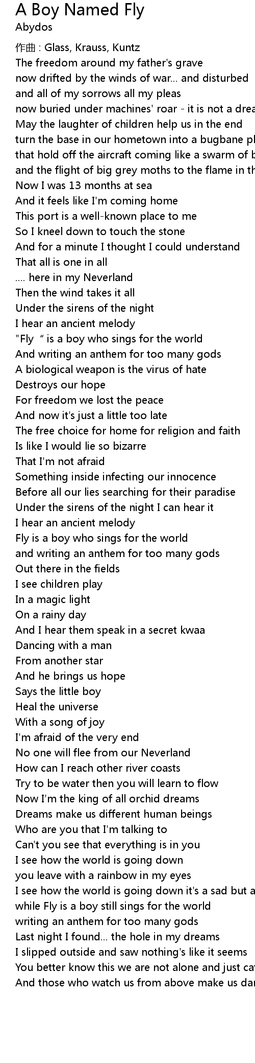 | "Fly“ is a boy who sings for the world | |