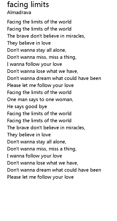 Facing the limits of the world |