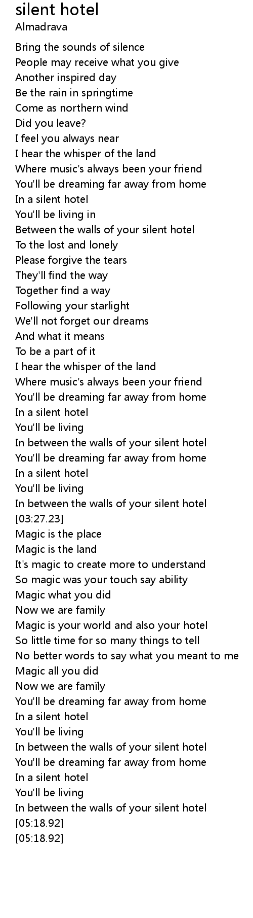 | [03:07.73] | In a silent hotel |