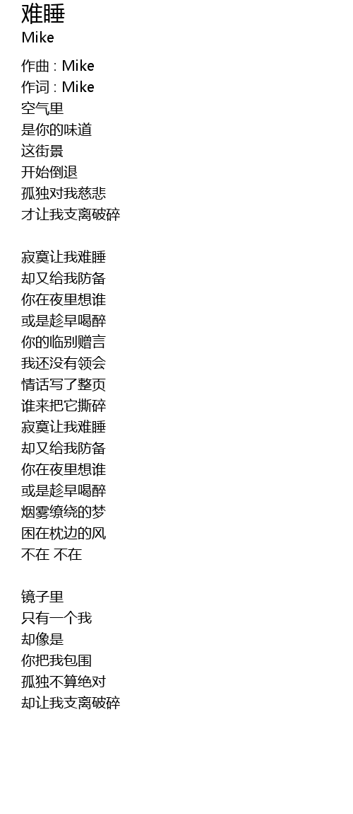 | 作词 : Mike | |