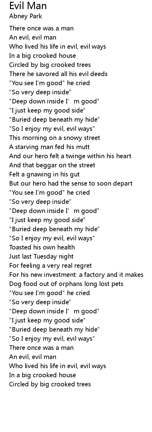 | " So I enjoy my evil, evil ways" | |