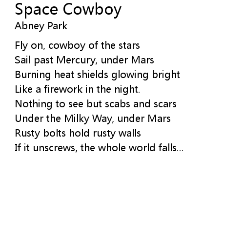| Fly on, cowboy of the stars | |
