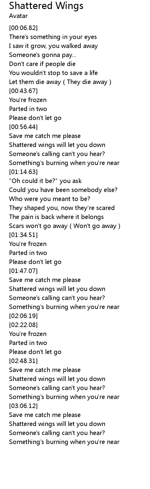 | [01:31.64] | Scars won't go away(Won't go away) |