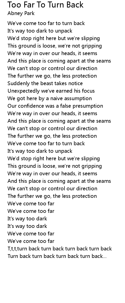 We've come too far to turn back |