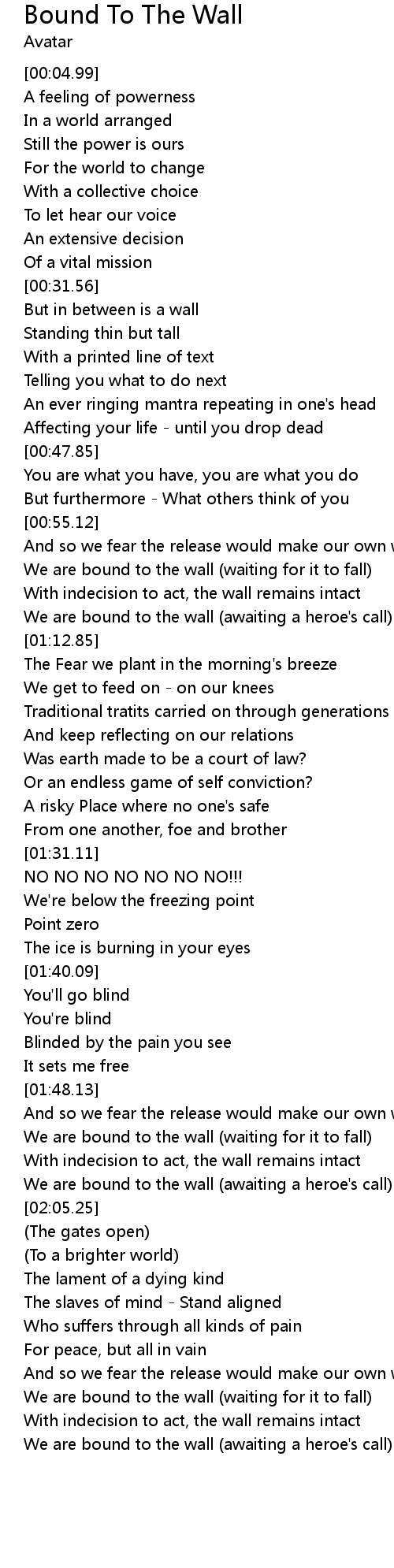 We are bound to the wall (waiting for it to fall) |
