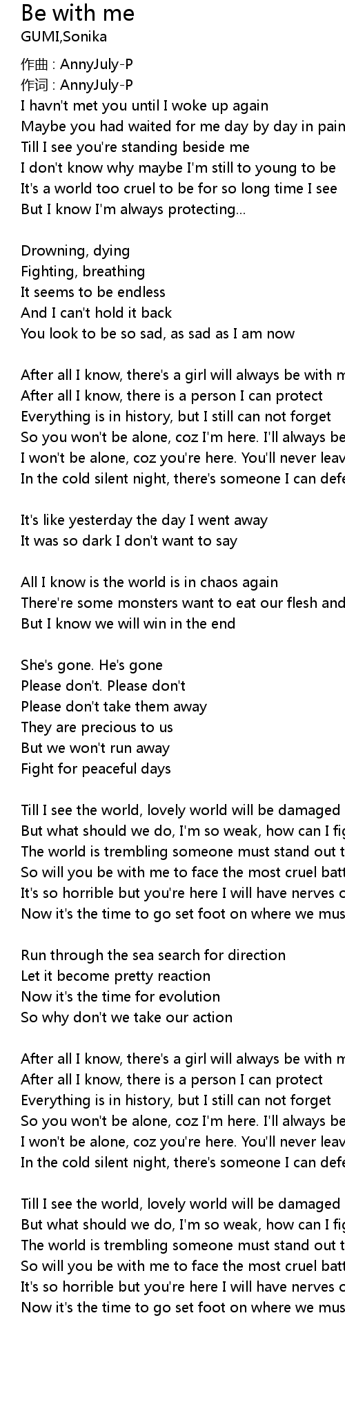 | So you won' t be alone, coz I' m here. I' ll always be with you | |