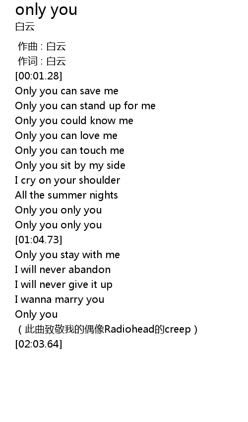 | [01:49.56] | (此曲致敬我的偶像Radiohead的creep) |