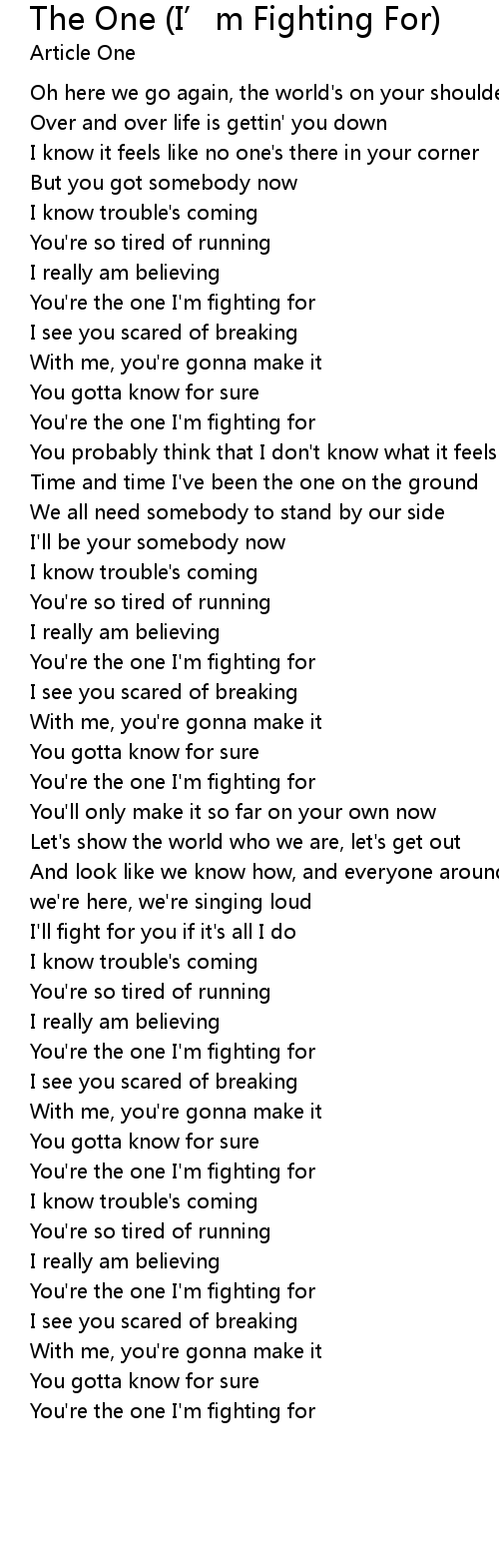 You're the one I'm fighting for |