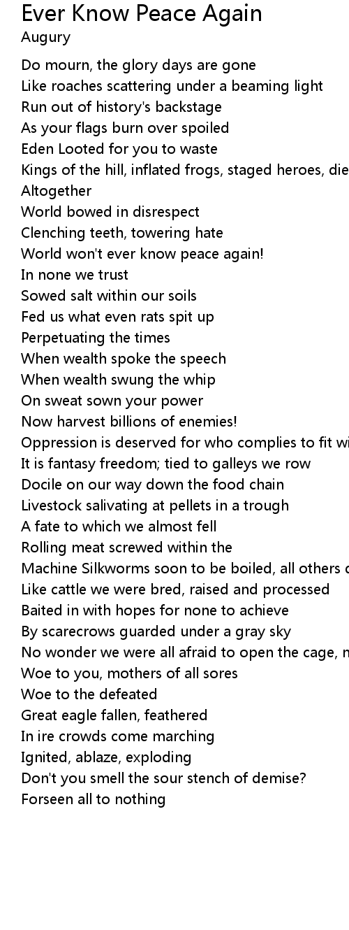 | World won't ever know peace again! | |