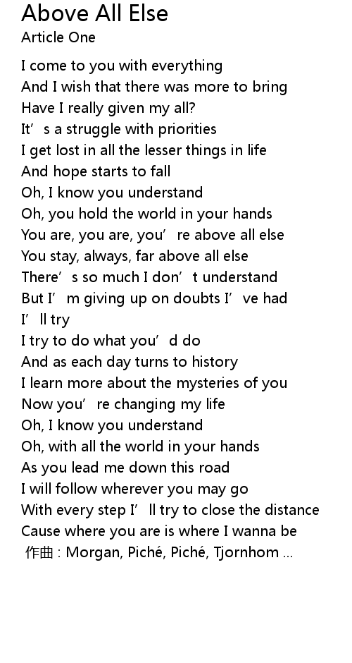 | Song | Above All Else |