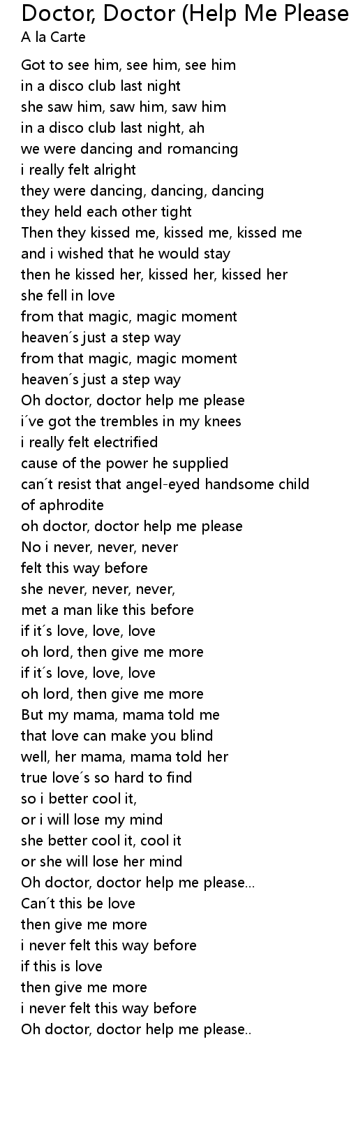 | Oh doctor, doctor help me please | |