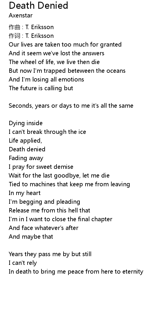| A hollow shell that once was me, my only legacy CHORUS | |