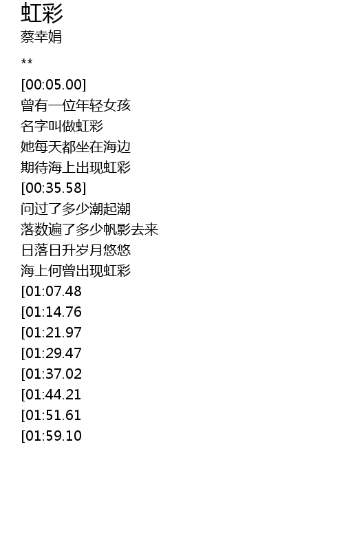 | [02:58.17][01:59.10] | 海上出现了虹彩 |