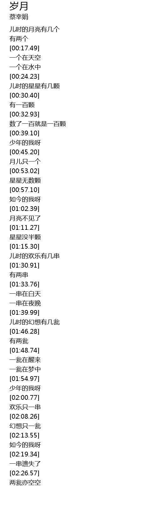 | [00:26.49] | 儿时的星星有几颗 |