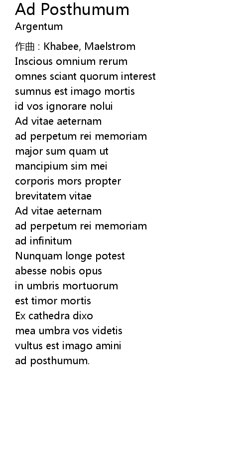 | Song | Ad Posthumum |