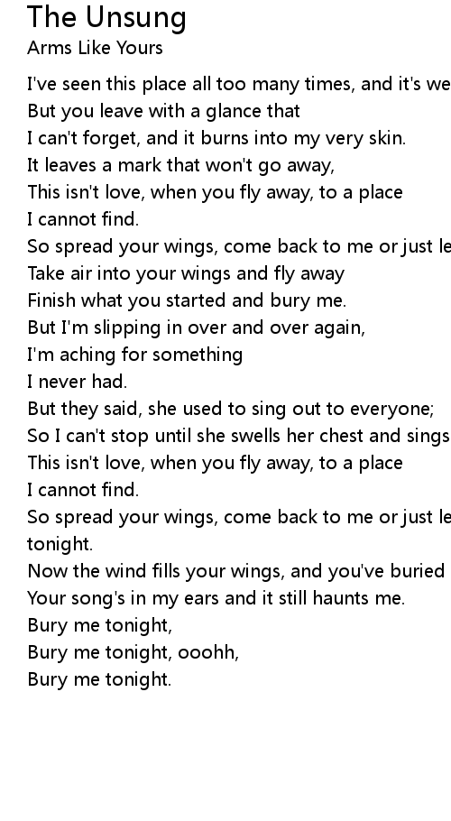 So spread your wings, come back to me or just leave, bury me tonight, bury me tonight. |