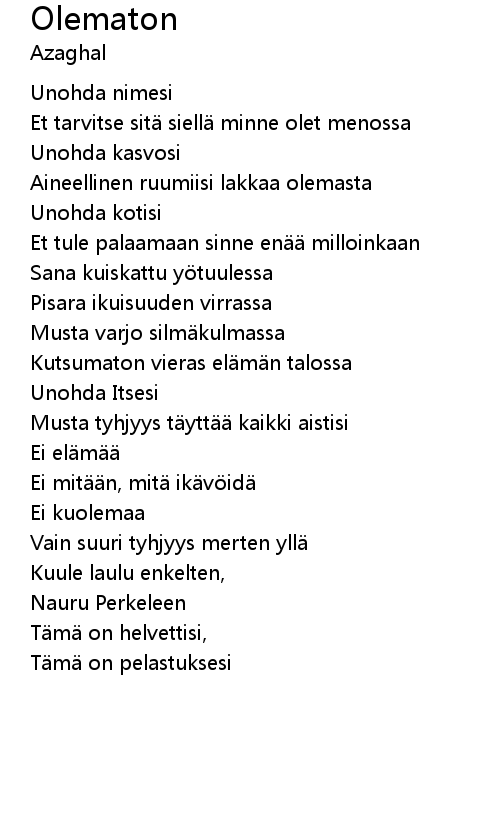 | Song | Olematon |