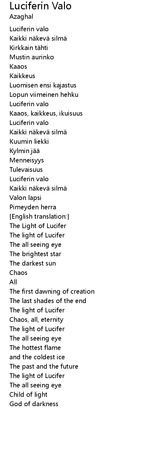 | Song | Luciferin Valo |