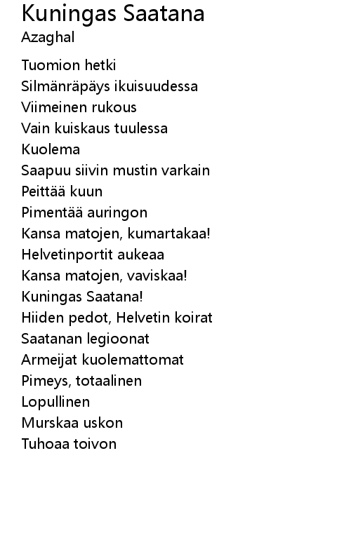 | Song | Kuningas Saatana |