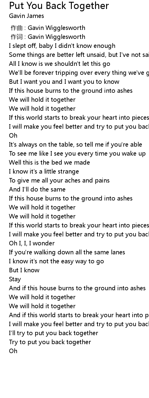 | Song | Put You Back Together |