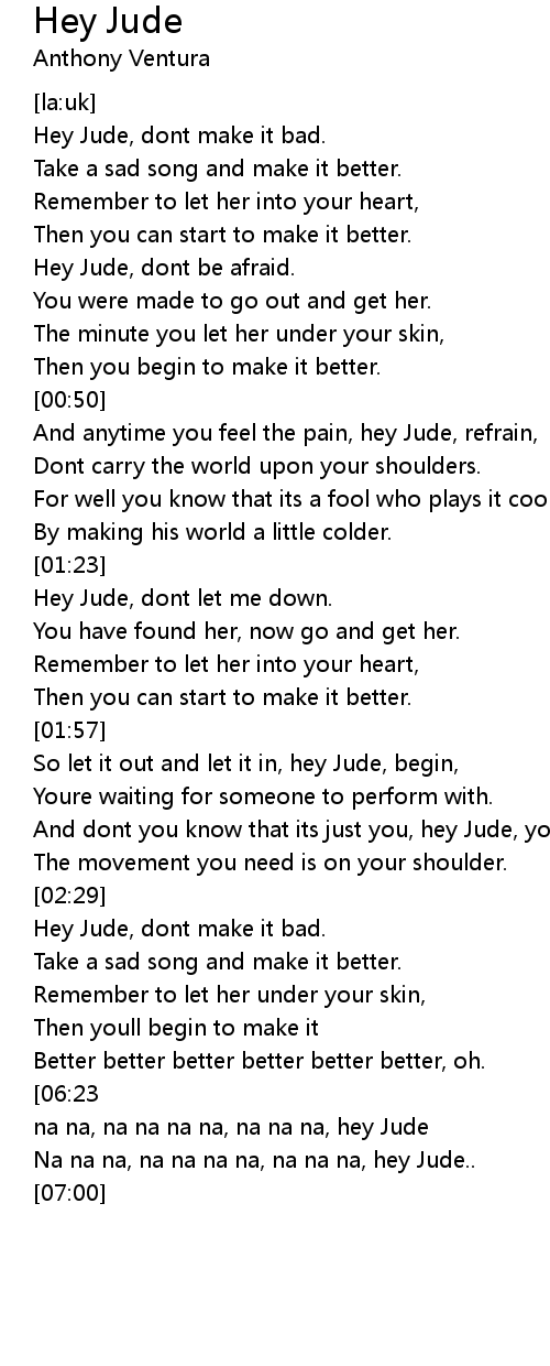 Hey Jude, dont make it bad. |