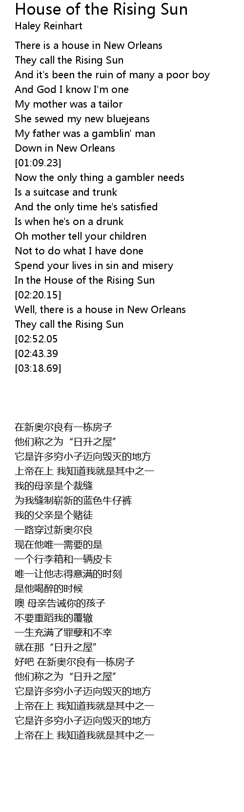 Well, there is a house in New Orleans |