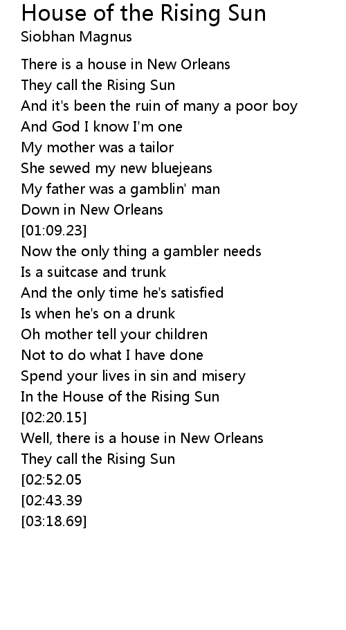 Well, there is a house in New Orleans |