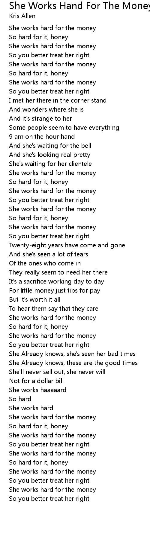 She works hard for the money |