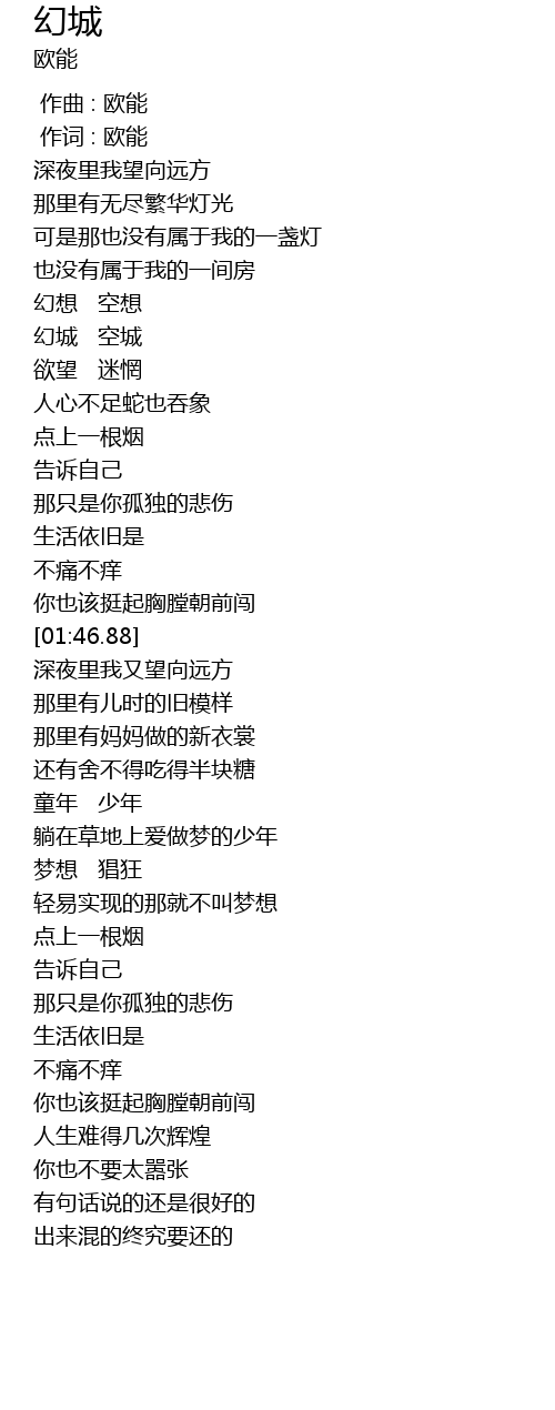 | [00:40.06] | 可是那也没有属于我的一盏灯 |