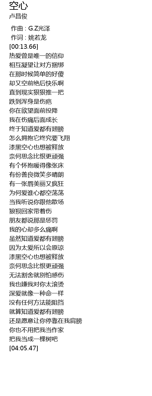 | [02:03.99] | 为何爱谁心都空荡荡 |