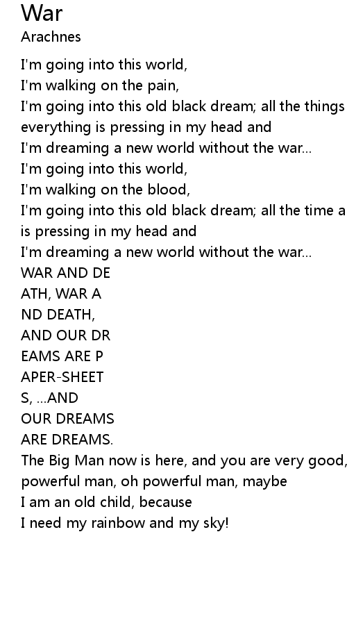 I'm going into this old black dream; all the time and all the space, everything is pressing in my head and |