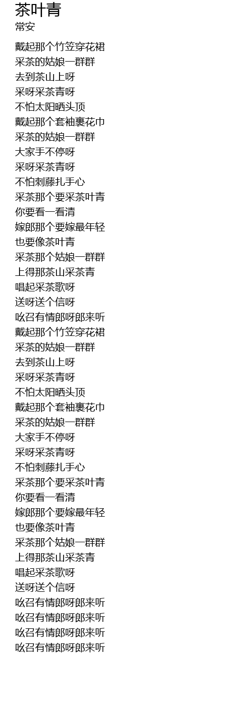 | [02:34.600] | 采茶那个要采茶叶青 |