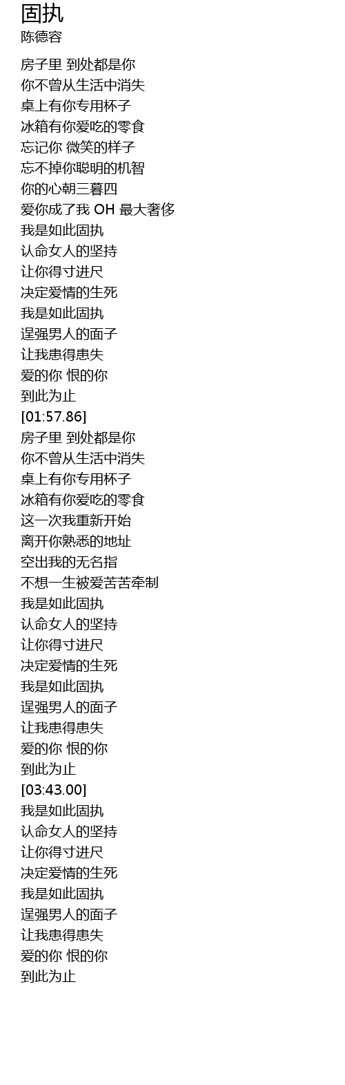 | [03:44.13] | 我是如此固执 |