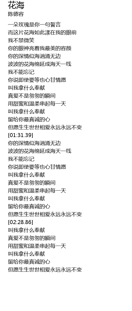 | [01:42.56] | 波波的花海绵延成海天一线 |
