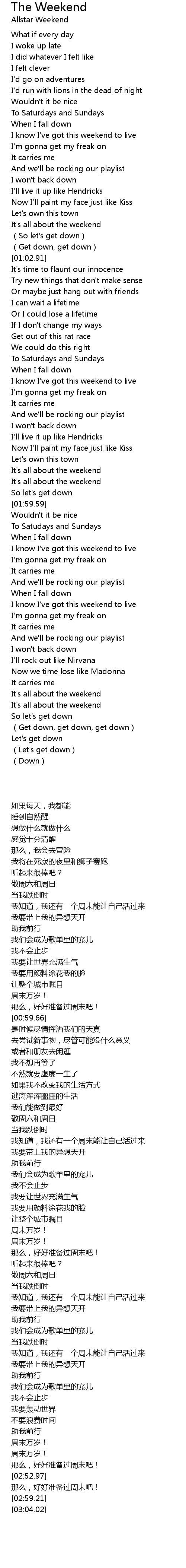| [00:54.79] | It's all about the weekend |