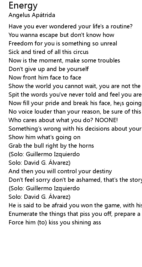 | Don't feel sorry don't be ashamed, that's the story, your energy | |