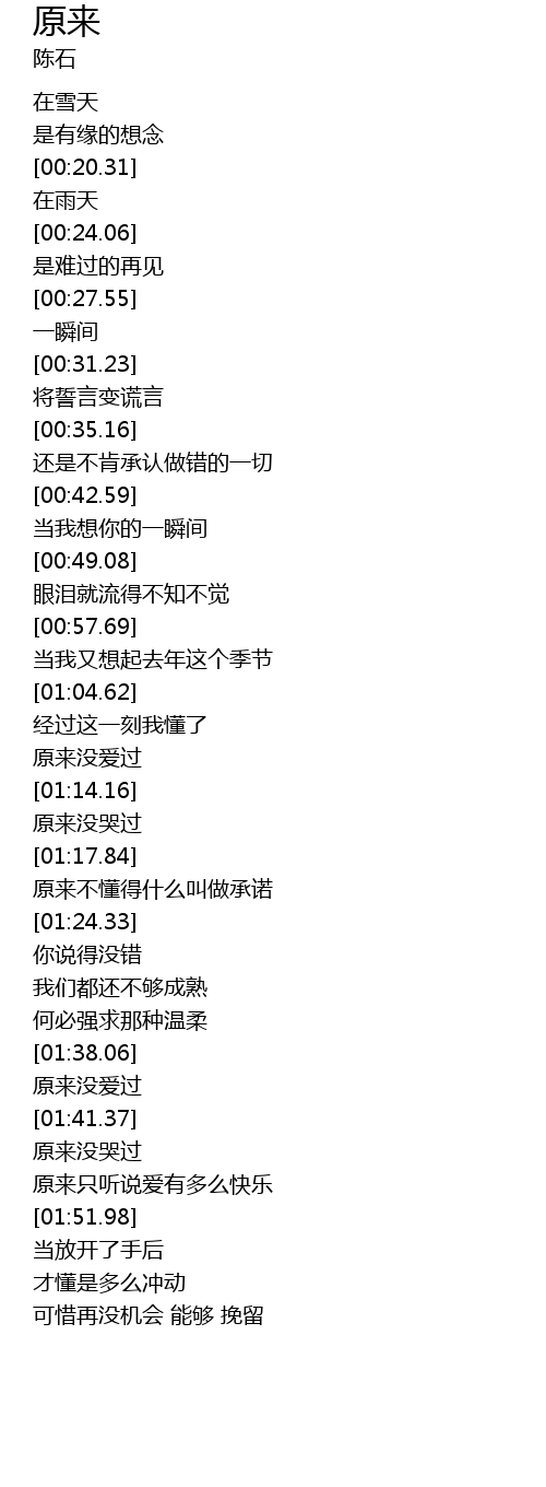 | [01:18.41] | 原来不懂得什么叫做承诺 |