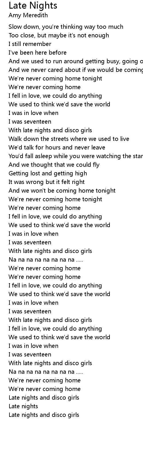 Late nights and disco girls |