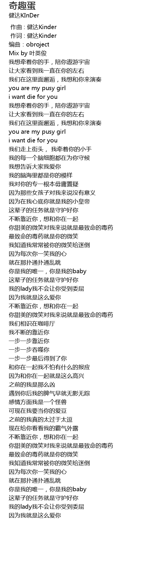 | [01:15.40] | ni shi wo de wei yi, ni shi wo de baby |